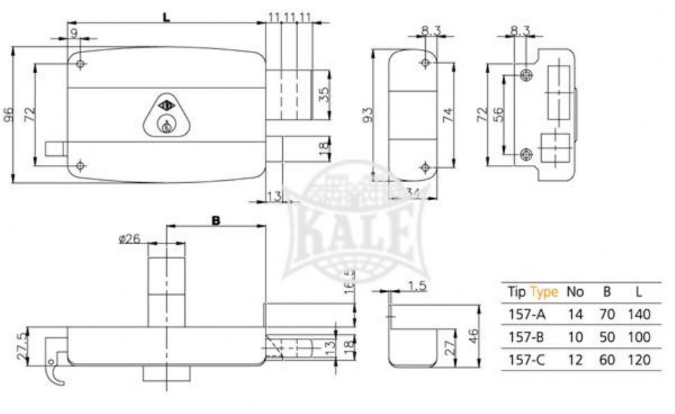 DIÅžTAN TAKMA TİRAJLI KİLİT NO: 14-10-12 AHÅžAP VE METAL KAPILAR İÇİN.SABİT VEYA KOVANLI STANDART SİLİNDİRLİ